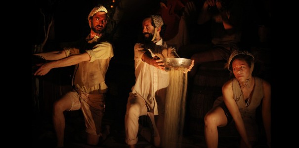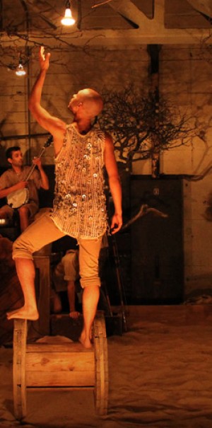 Presented in a fabric storage warehouse in the fashion district of DTLA in April 2014. Staged in three cubic meters of sand. Scored for harp, violin, cello, glock, musical toys, banjo, alto recorder and trash percussion. Developed at the J. Paul Getty Museums’ Getty Villa as part of their Theatre Lab series in March 2014.